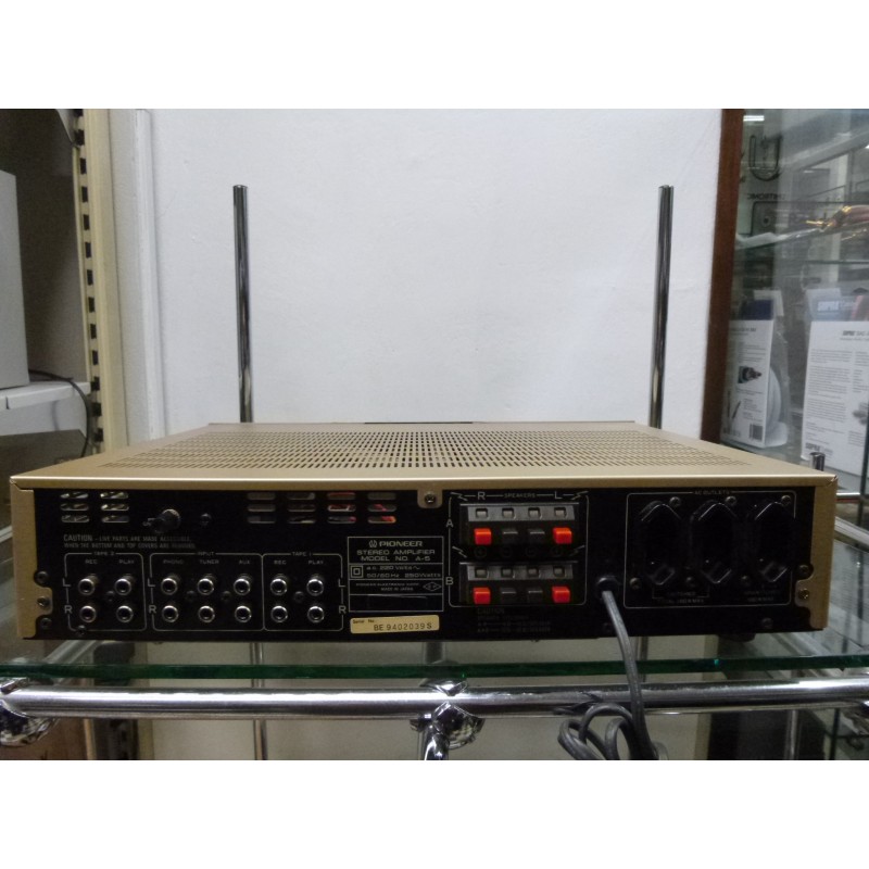 Made in Japan, 35 watt per canale, 8 ohm, risposta in frequenza 5-100.000 Hz, distorsione armonica totale 0,009%, 4 ingressi linea + phono, controlli di tono, speakers A+B, presa cuffia, dimensioni 420x98x367, peso 6,5 kg, perfettamente funzionante, senza segni.