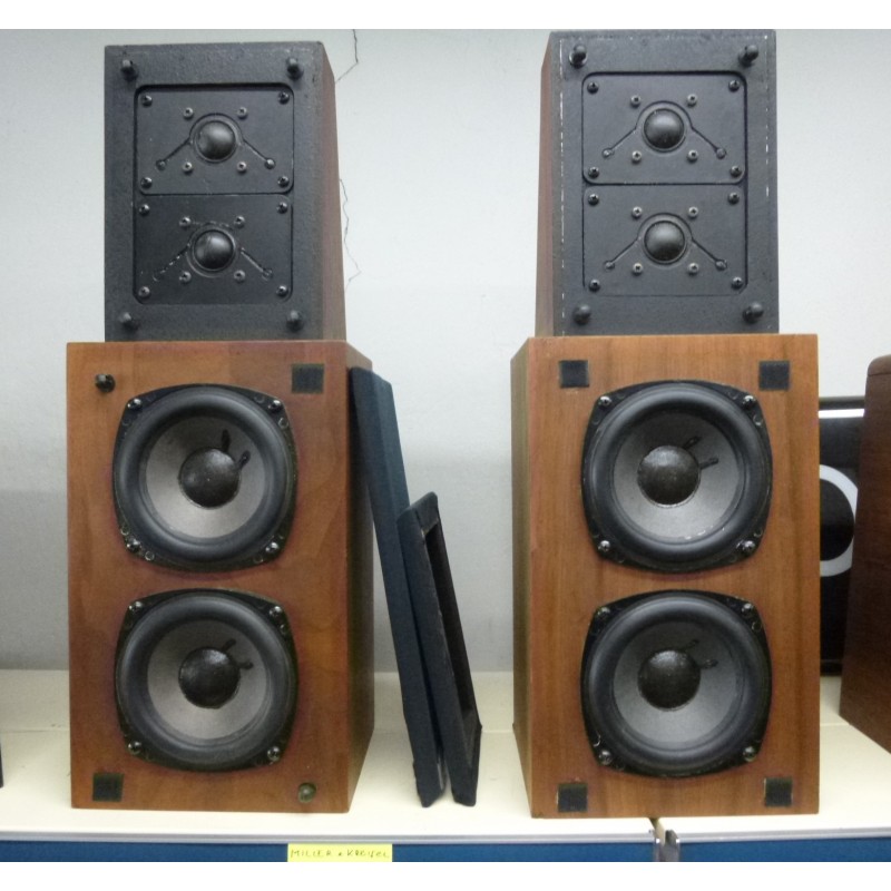 Storica coppia M&K Made in USA, diffusore a 2 vie a 4 altoparlanti, doppio midwoofer e doppio tweeter a cupola morbida Peerless, impedenza 4 ohm, sospensioni midwoofer nuove, dimensioni 20x20x55, funzionamento perfetto, piccoli segni dovuti al tempo.