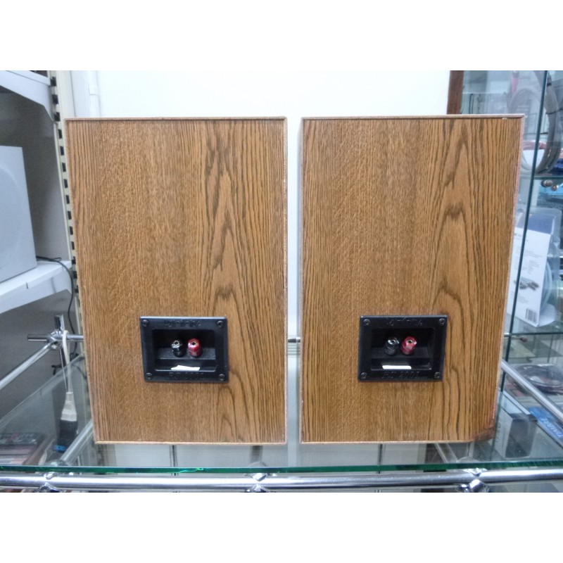 Coppia diffusori da scaffale a 2 vie, sospensione pneumatica, woofer in polipropilene da 17 cm, tweeter Polycell da 3,5 cm, 75 watt, 8 ohm, dimensioni 362x225x196, peso 7 kg, sospensioni nuove, funzionamento perfetto.