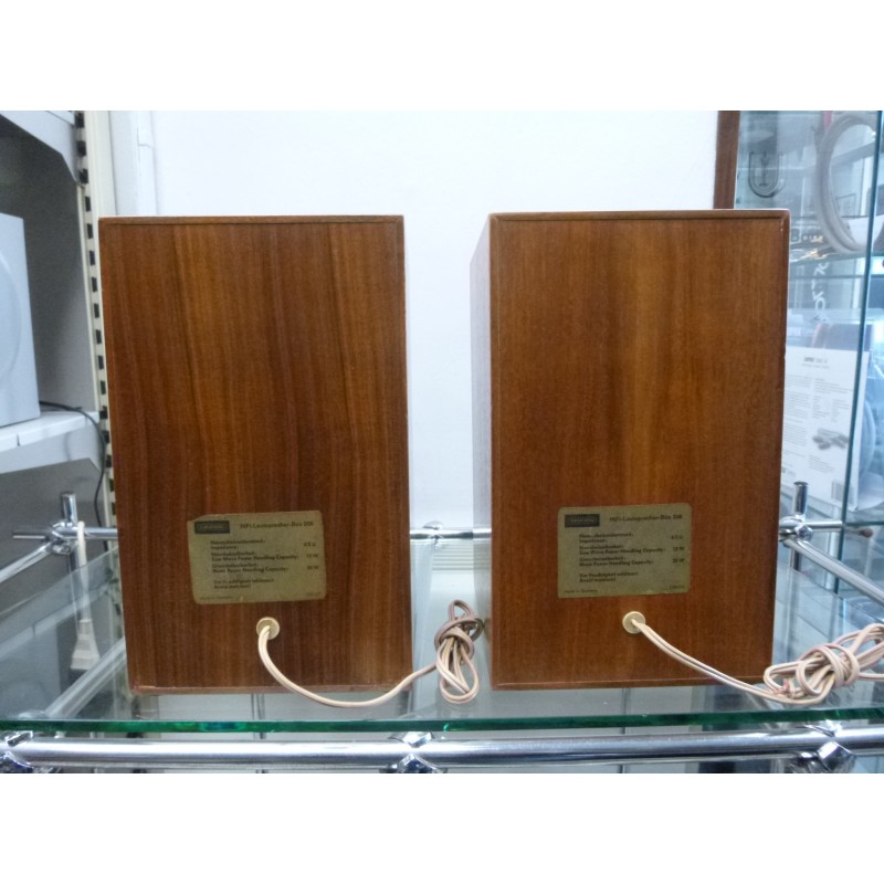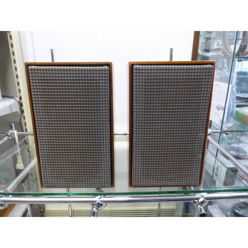 Coppia diffusori Made in Germany anni '70 da collezione, woofer da 13 cm, tweeter a cupola da 3 cm, impedenza 4/5 ohm, risposta in frequenza 50-26.000 Hz, dimensioni 280x170x190, peso 4,6 kg.