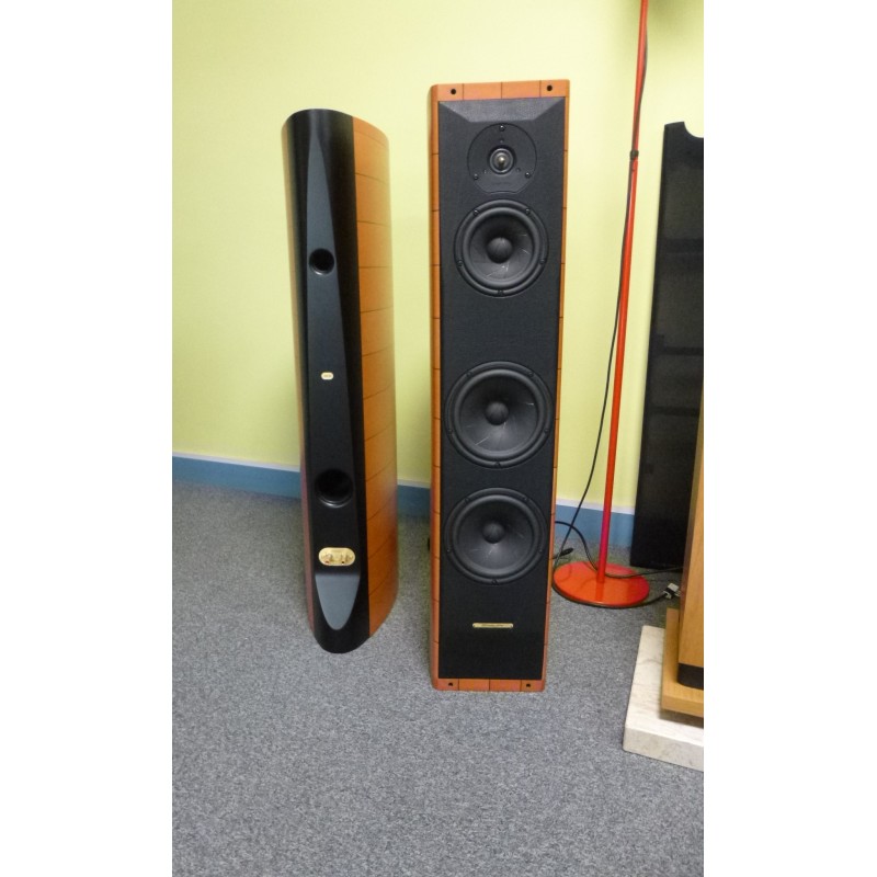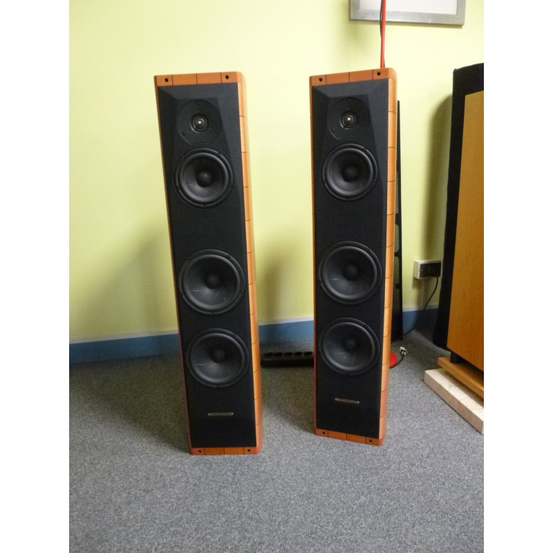 Made in Italy, 3 vie, potenza 50-300 watt, 2 woofer da 18 cm, 1 medio da 15 cm, tweeter ring radiator da 2,9 cm, bass-reflex, 90 dB, 4 ohm, risposta in frequenza 32-40.000 Hz, dimensioni 22,5x109x46, peso 34 kg.