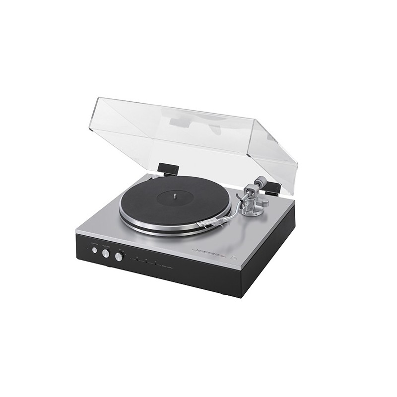 Piatto da 4 kg lavorato con precisione da un blocco di alluminio spesso e rifinito con taglio diamantato, il mandrino è in acciaio inossidabile da 16 mm di diametro, il motore di trasmissione e il trasformatore di potenza sono montati con speciali materiali di smorzamento in gomma per prevenire interferernze con i segnali audio.